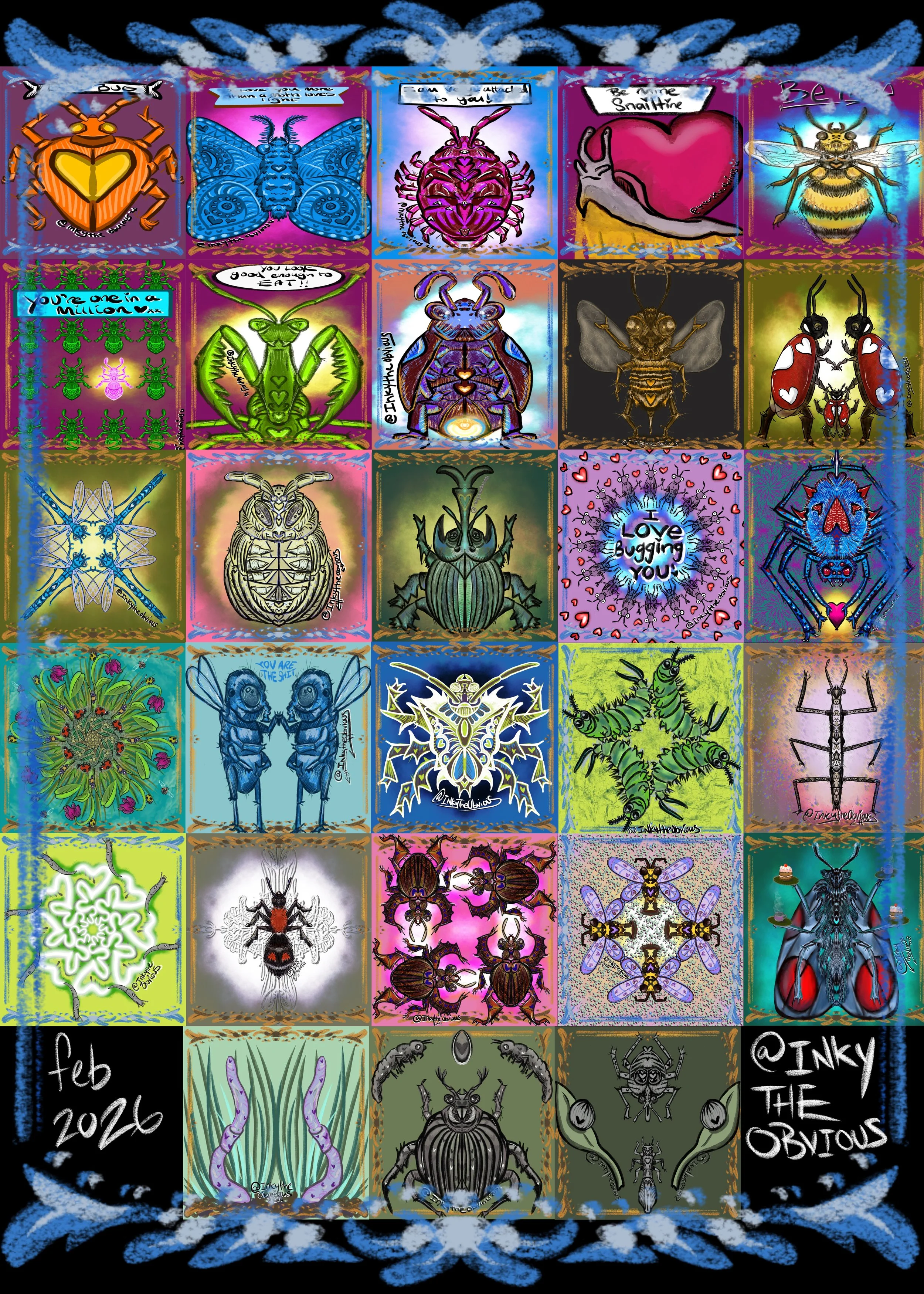 So welcome to all those who have found me via social media, for all those who haven’t please go to the about page and you’ll find those links. For February I done digital works all with valentines and love in mind, I came up with love bugs, because I found during January that I couldn’t draw insects and it was frustrating because I love insects and critters, I wish to look and the Mir to wold a little more, especially since I am working on my allotment hardcore this year, as I aim to get the most out of not just my plot, but my art and my life.